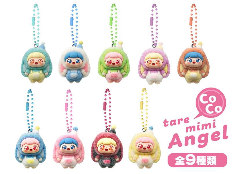 キラキラおめめとベビーフェイスがキュートなミニマスコット「たれみみエンジェル ココ」が登場♪人形の表面はふわふわとした柔らかなフロッキー素材となっております。本体カラーは全9種アソート。ボールチェーンが付いておりますので、かばんなどにぶら下げてお使いいただけます。