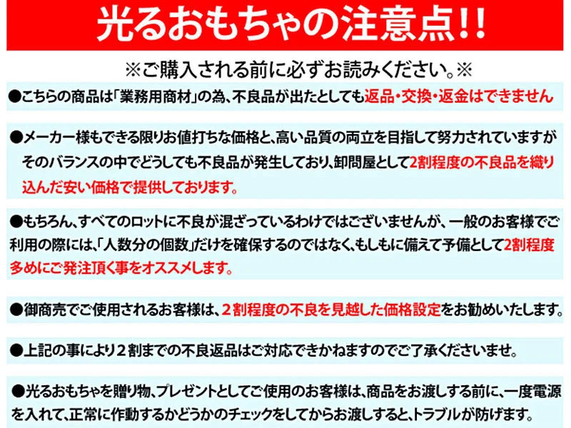 不良品発生時の注意事項を下部に記載しております。必ずお読みください。
