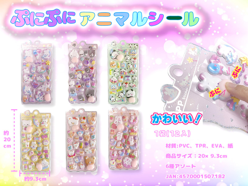 貼るだけで、毎日がちょっと楽しくなっちゃう♪見た目も触り心地も可愛い『ぷくぷくアニマルシール』が新登場♪平面のシールとは違い、立体感のある“ぷにっ”とした仕上がり。見た目の可愛さはもちろん、写真映えも抜群で、つい触りたくなる質感です。ノートや手帳の表紙、スマホケースのデコレーションにもぴったり。貼るだけでワンポイントのアクセントになり、かわいさがぐっとアップします。女の子向けのご褒美景品やプチギフトにもおすすめです!