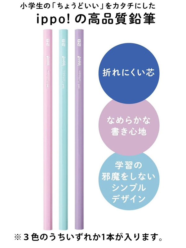 - 鉛筆の軸の色は全3色ありますが、いずれか1本が入ります。