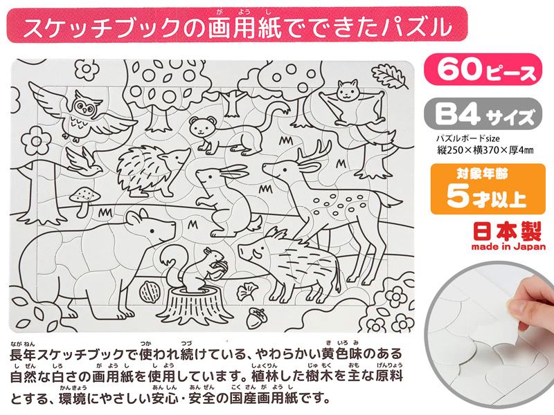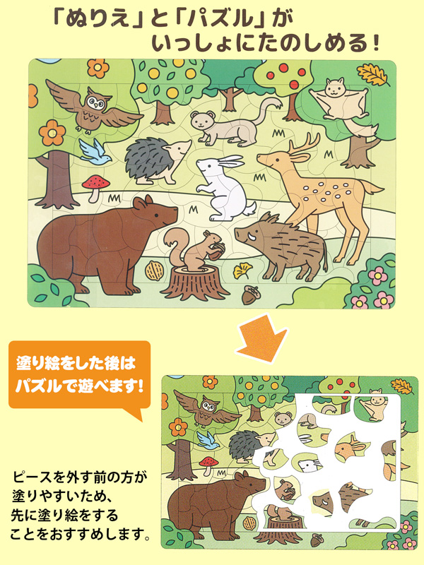 マルマン B4パズル塗り絵 もりのどうぶつ(60ピース)