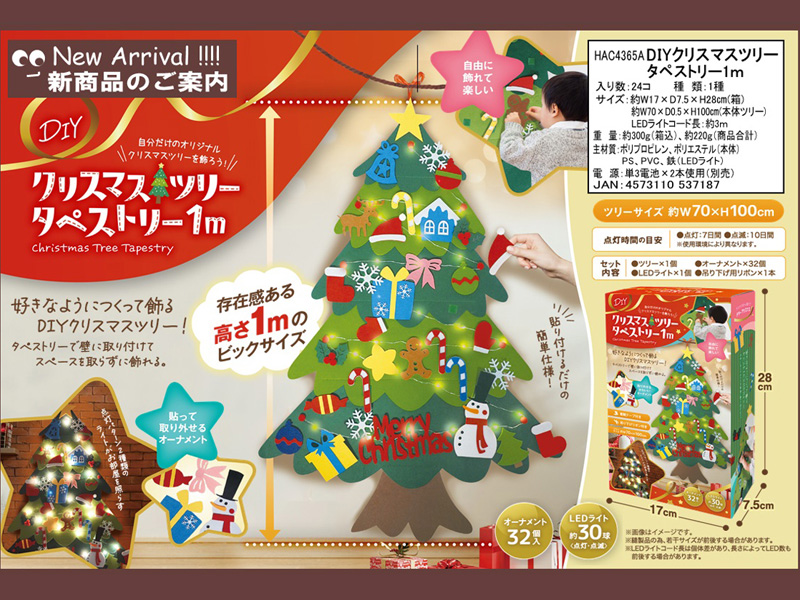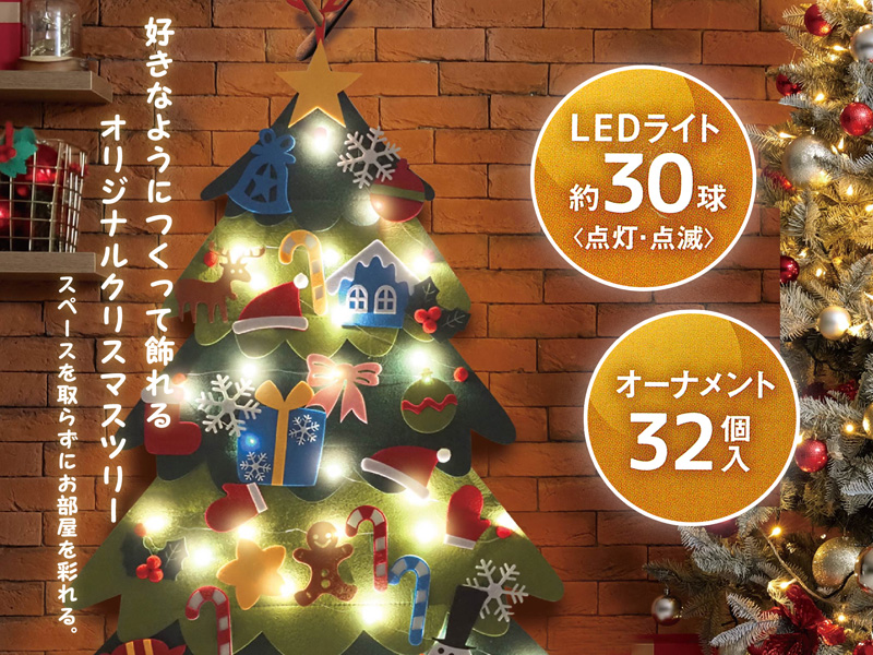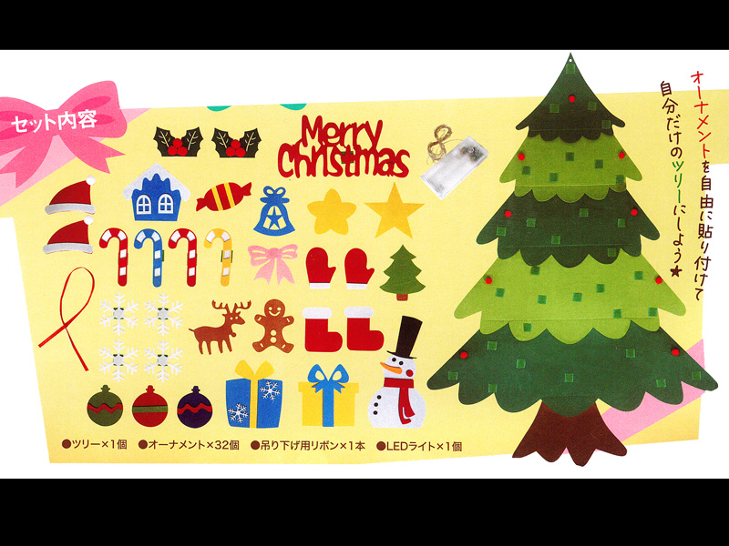 - セット内容:ツリー(本体)×1・オーナメント×32個・吊り下げ用リボン×1本・LEDライト(約30球・コード約3m)×1個
