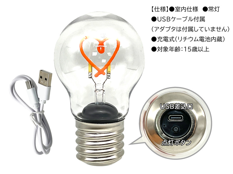男女共用おもちゃ LEDバルブライト(ハート)