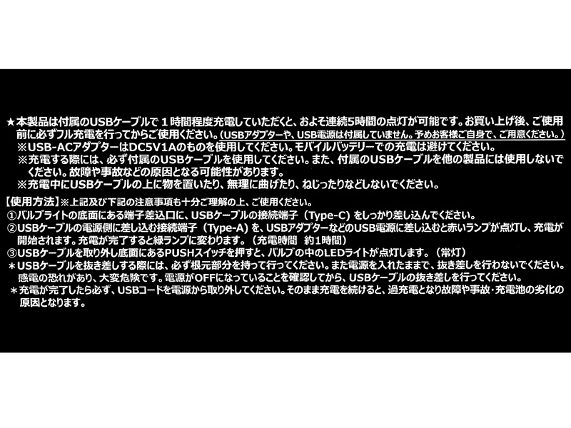 - ※1時間の充電で約5時間使用可能。