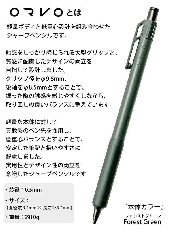 学童文具 ORVO シャープペンシル フォレストグリーン