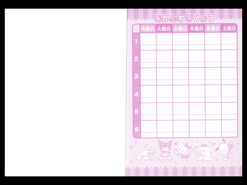 水彩タッチの優しい色合い「サンリオキャラクターズ」の2026年版ステーショナリーグッズが続々登場!コチラは〈じかんわりひょう、ひらがなひょう、カタカタひょう〉付きの、かわいい自由帳♪本文は30枚あるのでたくさん書くことができます