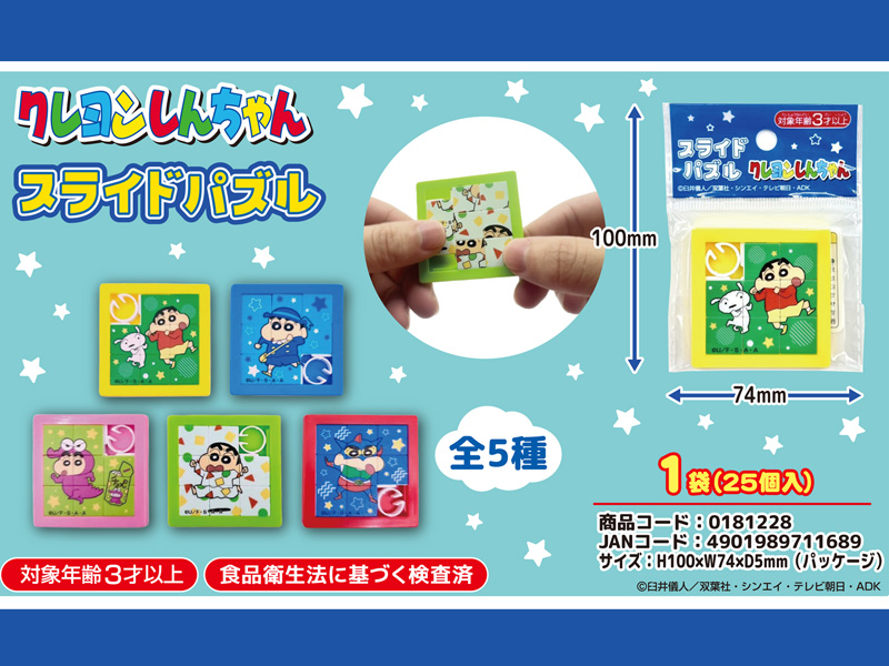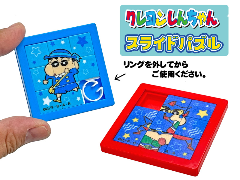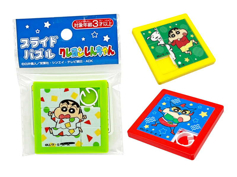 アニメ【クレヨンしんちゃん】のスライドパズルが登場!可愛いしんちゃんがデザインされた小さなスライドパズルです♪8ピースなので小さなお子様でも遊べる簡単なパズルです。低単価アイテムなので各種イベントの販促品や飲食店さんのランチ景品などにもピッタリです。