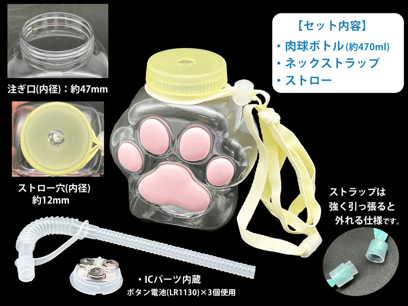 - セット内容:肉球ボトル×1・ストロー×1・ネックストラップ×1