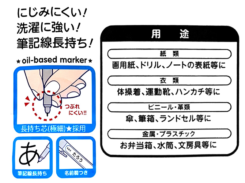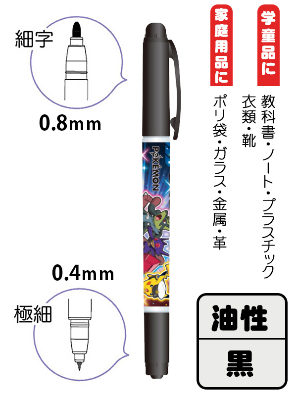 - 仕様…油性黒インク(細字0.8mm/極細0.4mm)のツインタイプ