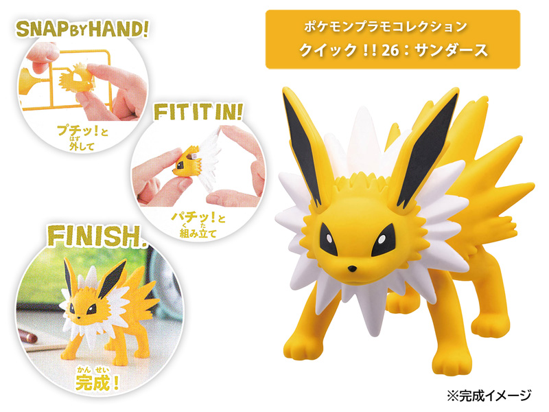 道具いらずで、初めてでも簡単に組み立てられる「ポケプラクイック!!」にサンダースが仲間入り!■集めたくなる魅力的な可愛いポーズを楽しもう。■こだわりのパーツ分割で簡単組み立て&カラフルな仕上がりを両立。■ランナーを見た瞬間、出来上がりが思い浮かぶシンプル仕様。■道具を使わないタッチゲート方式です。