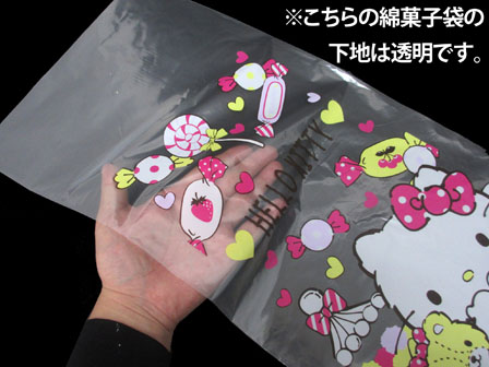 ハローキティ柄の縦長わたがし袋が登場♪すごく薄いので、わたがし以外の物を入れたい場合は、かなり軽い物以外は入れないほうが良いですよ。
