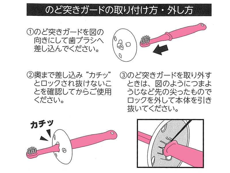 じぶんで歯みがき ⇒ 仕上げもできる2WAY歯ブラシ!上下の前歯が生えそろう頃(8ヵ月~)からのベビー歯ブラシです。太めで平らなグリップなのでしっかりにぎれてブラッシングすることができます。まっすぐなグリップが、お子様の歯みがき後に保護者が仕上げみがきしやすく、2WAYでご使用いただけます。やわらかい毛で乳歯と歯ぐきを磨くことで「歯みがき嫌い」をなくしましょう♪ 歯磨き中の「のど突き」を防ぐガードもついています。