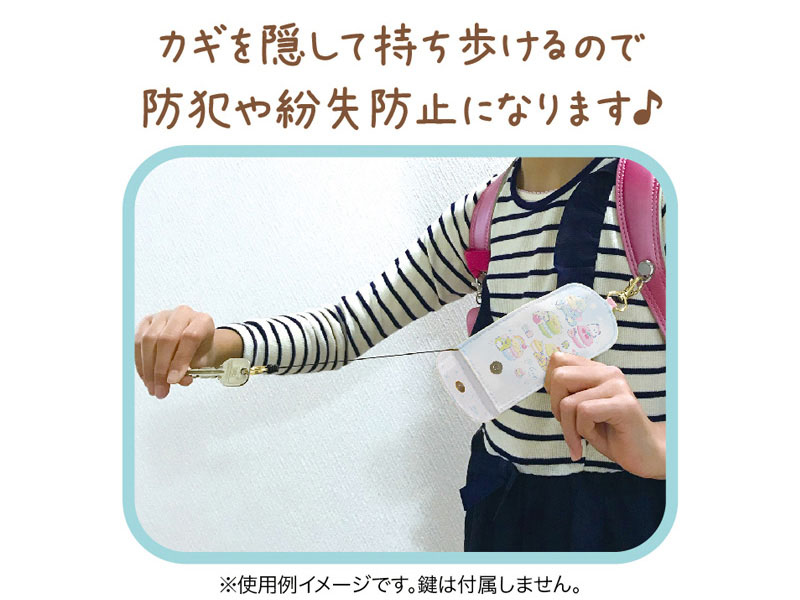 すみっコぐらしのハッピースクールよりカギを隠して持ち歩ける「リール付きキーケース」が登場♪防犯や紛失防止に役立つリース付きキーケースは必要な時にサッと伸ばして使えます。女の子へのプレゼント・キャラクター雑貨にいかがでしょうか?