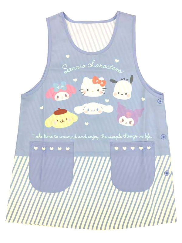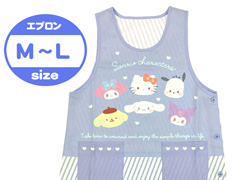 エプロン サンリオキャラMIX 転写脇釦 ブルー M/L