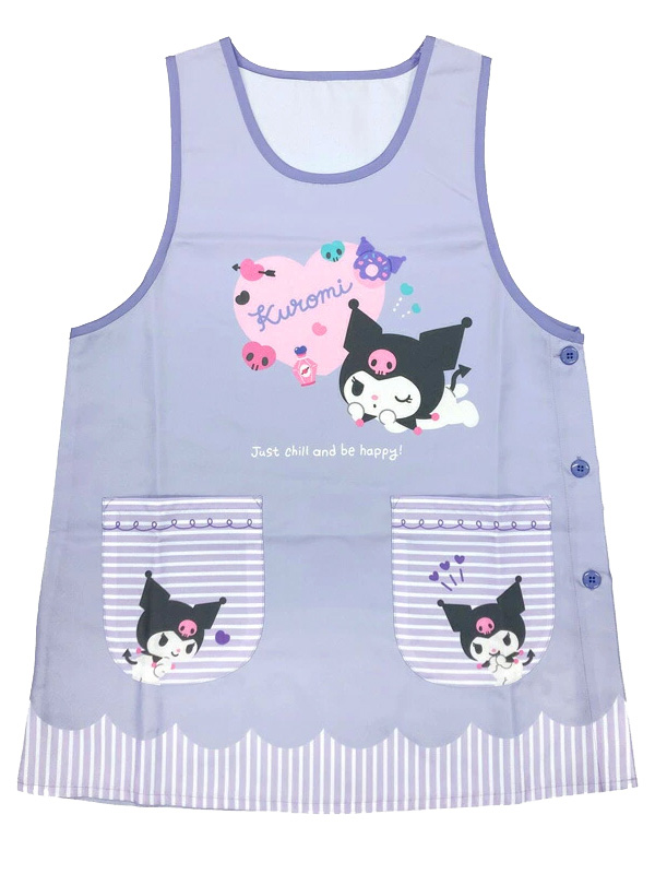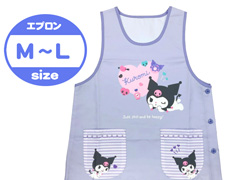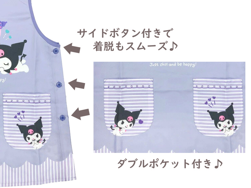 サンリオの大人気キャラ【クロミちゃん】のかわいいキャラクターエプロンが登場♪エプロン正面には小物がしまえる2つのポケットつき♪左脇がボタンになっているから脱ぎ着もしやすいです。対応サイズは(154~162㎝)なので高学年のお子様もしくは、保育園や幼稚園の先生など大人方へのプレゼントにも喜ばれそうです♪