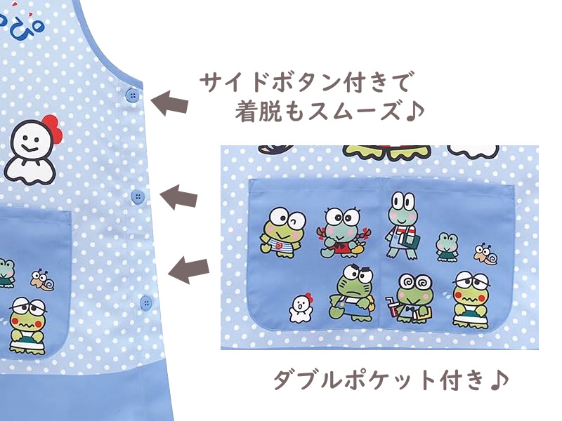 エプロン けろっぴ 転写脇釦 サックス M/L