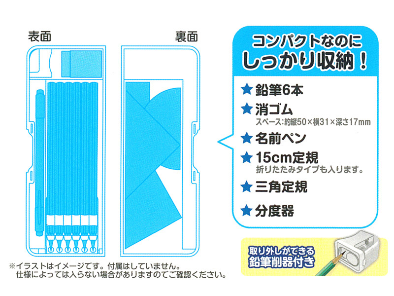 - 付属品…鉛筆削り、時間割表、鉛筆ホルダー(6本分)、