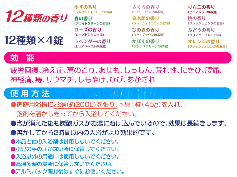 - 入浴剤:全12種類×4錠入
