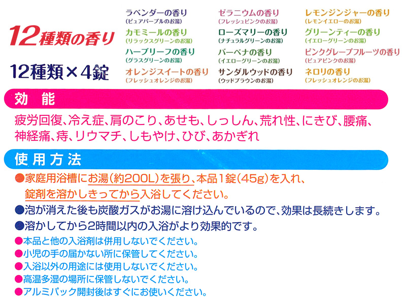 - 入浴剤:全12種類×4錠入