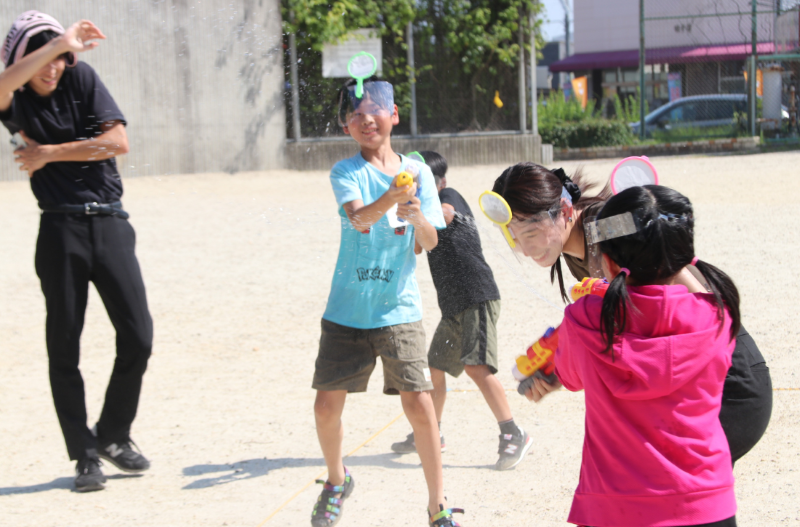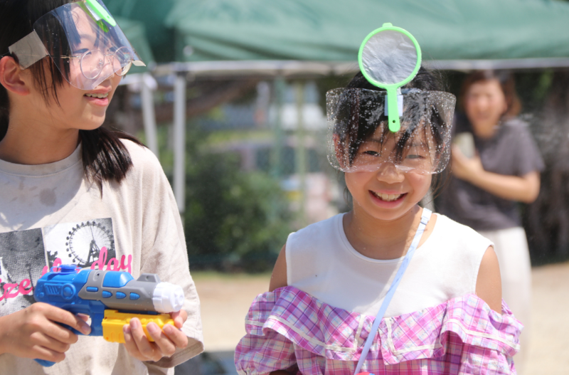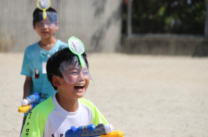 そしてこの日、子どもたちの笑顔と歓声をさらに大きくしたのが、水鉄砲とポイを使ったチーム対抗ゲーム、ポイポイバトラー!